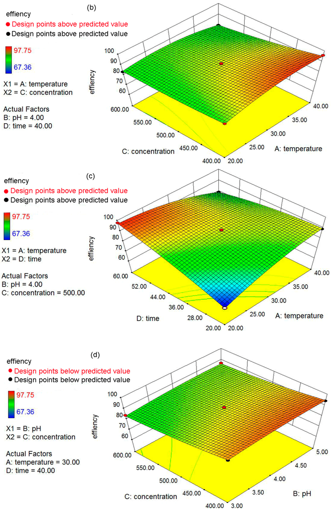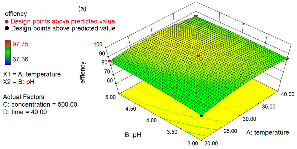 29]. However, this study required a large number of batch experiments to be performed. The experimental design technique is a powerful tool in the field of engineering, which helps in better understanding and improving efficiency of the process [