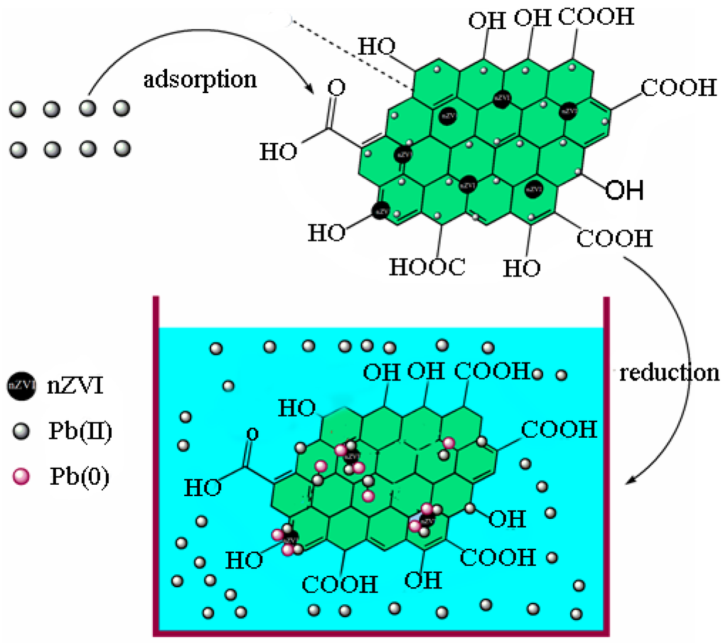 24]. The nZVI/rGO composites were also used to remove Pb(II) ions in aqueous solution, and the operating parameters, such as contact time, solution pH, initial Pb(II) concentration and temperature, have been investigated [