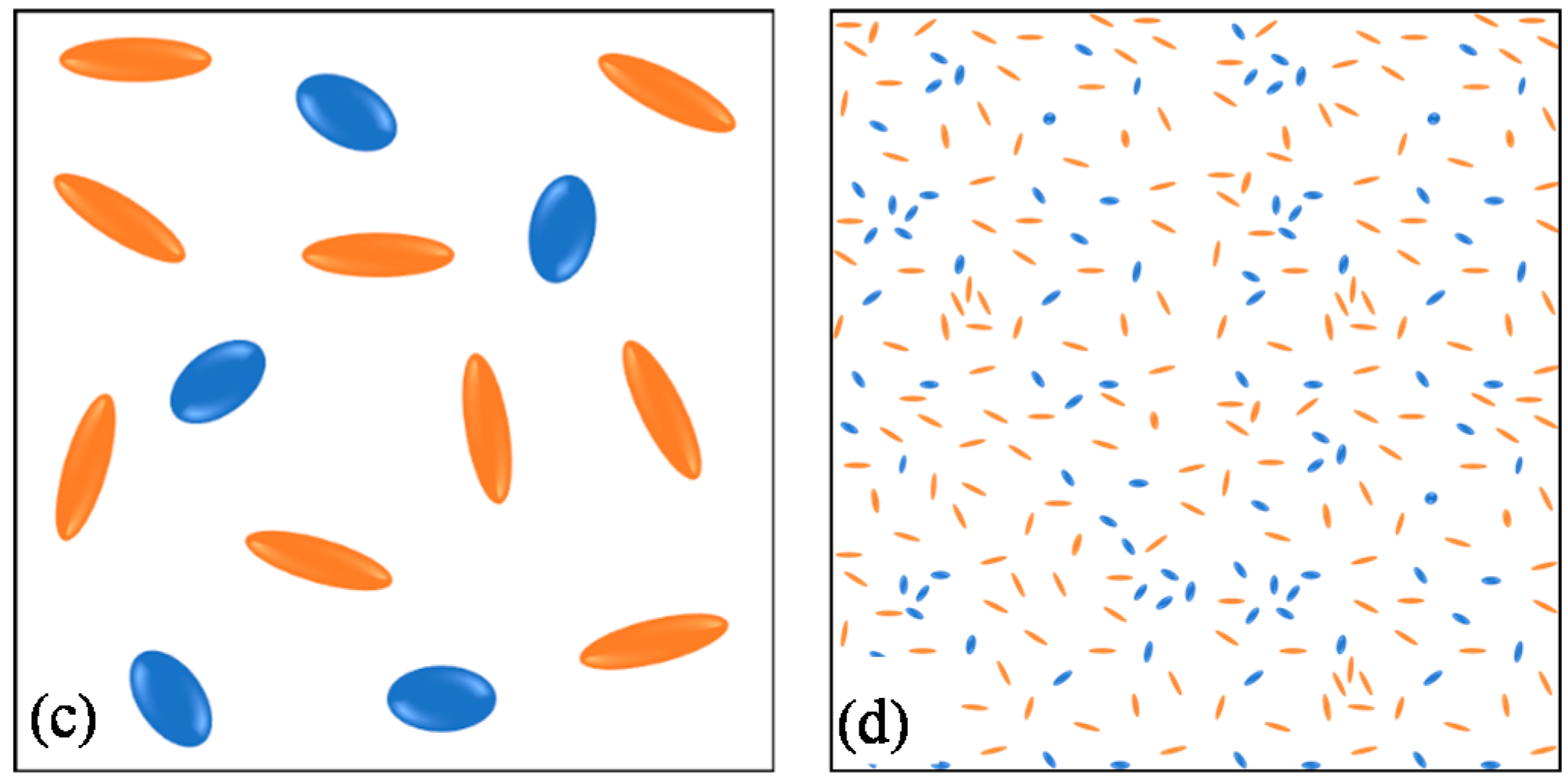 Inclusion geometries and orientation for: (a) Minnich and Chen [18]; (b) Ordonez-Miranda and coworkers [19]; and (c) generalized EMT—current work; (d) A schematic representation non-uniformly distributed inclusions—current work (inclusion sizes are not to scale).