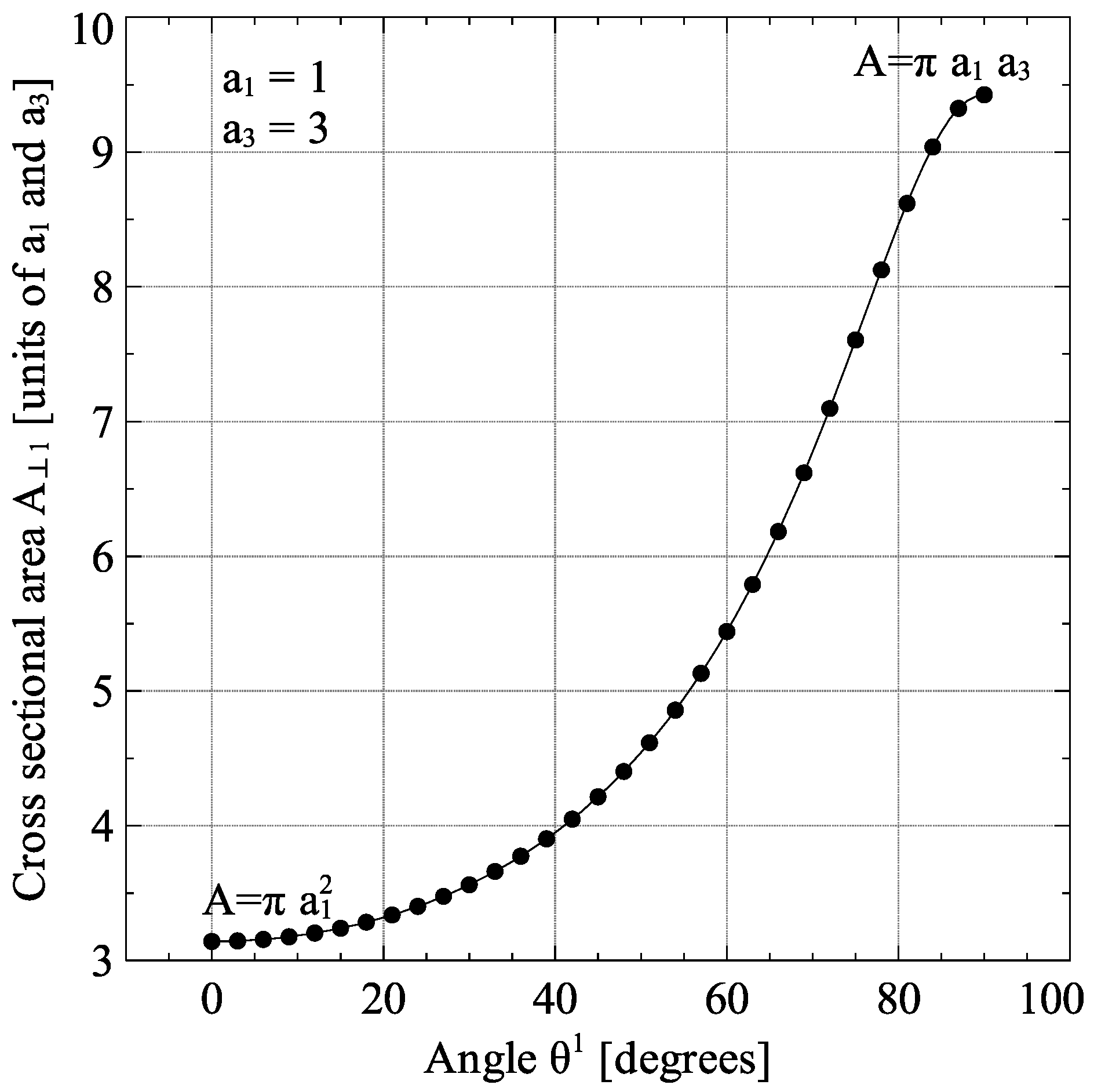 The dependence of the spheroidal cross section area on is shown in Figure 2.