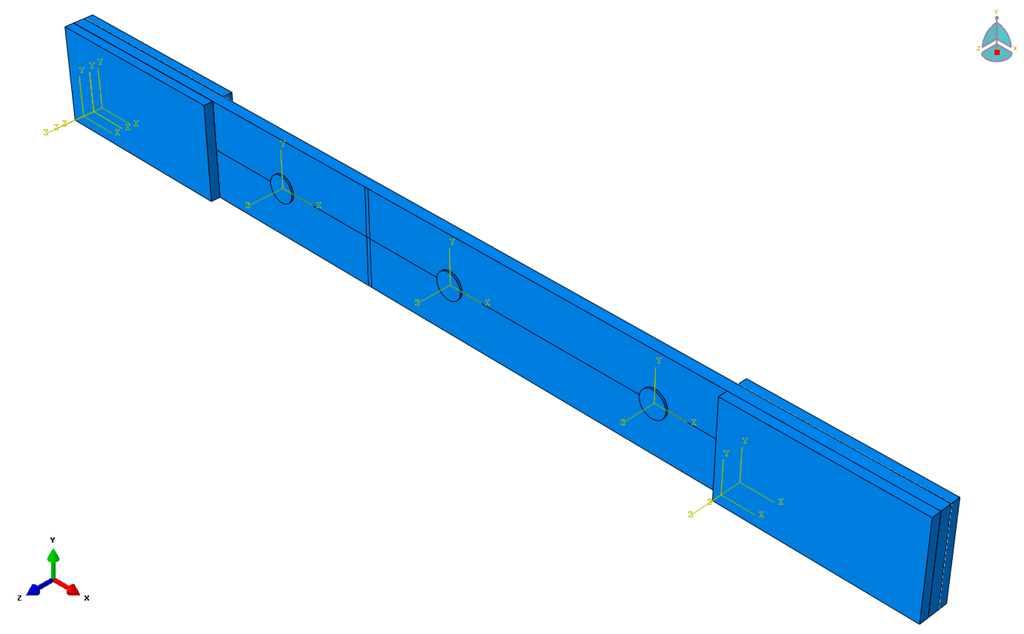 ABAQUS model of the homogenised 3D woven composite with 3 PWAS bonded on the top to record the AE events from the surface simulated transverse crack.