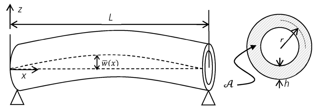 The curved SWCNT as a Timoshenko beam model with length L, constant cross section, , mean wall radius r and thickness h, is illustrated in Figure 1. denotes the typical initial geometric imperfection of the curved SWCNT.