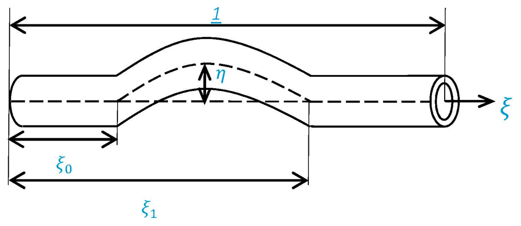 Noting that now a dot superscript denotes differentiation with respect to non-dimensional time () and represents differentiation with respect to non-dimensional parameter, . is called the nonlocal parameter. Thus, Equation (13) and the boundary conditions, Equation (4), can be rewritten in the following form.