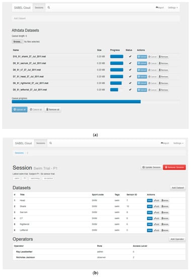 The value of feedback of performance and biomechanics data to both coaches and athletes is fundamental to the learning process. This information can come from sporting periods such as: intra session, inter session, seasonal, years, and multiple athletes/teams as an aid to learning []. To gain competitive advantages, individuals or teams have inherently required greater detail or information. To meet this ongoing demand necessitates moving from single small data sets to large multimodal data from various sources ranging from wearables to laboratory equipment and video for effective intervention. The growth in this demand is evidenced by the 30+ year paralleled expansion in sport science professional recruitment as supporting staff as well as the world wide establishment of government backed institutes of sport in part to facilitate the increased need to analyse the larger volumes of data in order to gain or maintain a competitive edge. Such initiatives are on the rise in many disciplines including: health domains [], expertise and topologies from collaboration type tools [] and innovation in programming methodologies []. These examples are useful points of reference to consider for technological uptake that have similar purposes for different applications. This paper presents a multidisciplinary approach grounded in feedback from wearables fused with various sources that will be presented in the remainder of this document. Therefore, the contained information has been arranged to present a basic architecture based framework along with a cloud based application, together with a sample implementation using commonly available tools and a high performance computation environment, specifically, MATLAB (version 7.11.0.584 (R2010b), The MathWorks, MA, USA).