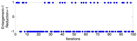 Figure 1 depicts the process of explosion enlargement and reduction during the optimization of the Sphere function. An alternating behavior is noted, with reduction being performed more often, on the one hand because up and low are set to 1.2 and 0.9, on the other hand because the initial value of the explosion amplitude is set to the size of the search space, which is a considerable initial value.