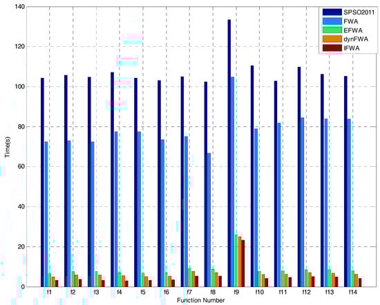 The FWA, EFWA, dynFWA, SPSO2011 and IFWA run-time cost (Continued).