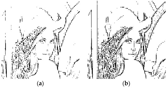 Step 4. By setting appropriate threshold T, a binary image consisting of the texture information is obtained. From Figure 3, we can see that the texture feature of the host image is better described than other thresholds when the threshold . Therefore, the threshold is set as 0.25 in this paper.