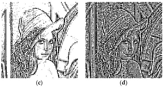 The security of the watermark is another issue that the watermarking scheme should be considered. Arnold transform also known as cat map is an effective encryption algorithm usually adopted in the watermarking scheme [20]. By Arnold transform, the image pixels are randomly permuted, but after a certain amount of permutations, the original image will reappear. In other words, it has good periodicity. The transform period is decided by the image size. For the image with a size of 256 × 256, the Arnold transform period is 192. By using this feature, we can encrypt the watermark by selecting a scrambling time. At present, most of the watermarking algorithms only apply the Arnold transform to the watermark on the sending side [12]. To further improve the security of the proposed method, in this paper, not only the watermark but also the embedding positions are encrypted by using two different secret keys ( and ). Figure 10 shows the extracted binary texture images, which are obtained by using the correct and incorrect combined keys. We can see that, without correct keys, the embedded watermark shown in Figure 10d cannot be obtained. It proves that the proposed algorithm achieves good security.