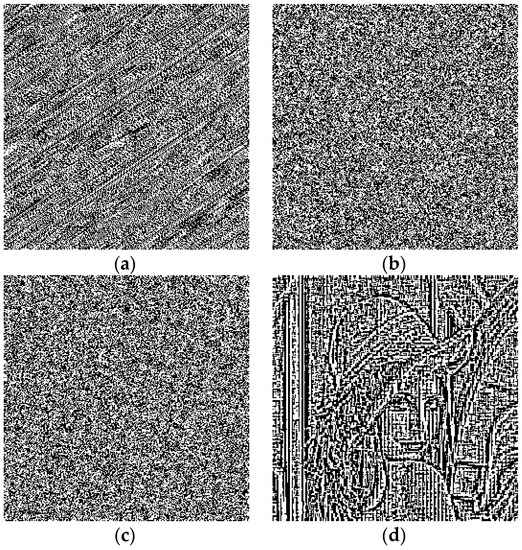 Extracted binary watermarks with different key combinations: (a) ; (b) ; (c) ; (d) .