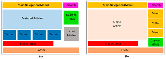 Templates for the homepage of educational websites. (a) A template for publishing the main content of the homepage in blog layout format; (b) A template for publishing the main content of the homepage in the form of an article.
