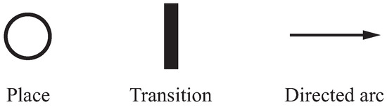 A Petri net (or a net for short), denoted by , is a bipartite graph consisting of elements shown in Figure 1, where: