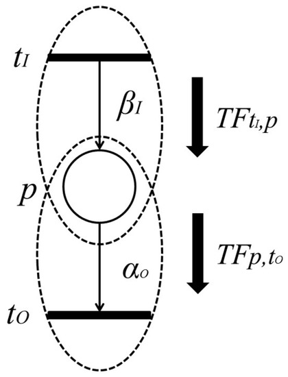 [23] With the firing of transition , token amounts flowing into place p per unit of time are called “input token-flow” and are denoted by . On the other hand, with the firing of transition , token amounts flowing out of place p per unit of time are called “output token-flow” and are denoted by . and (shown in Figure 6) are defined by the following equations, respectively: