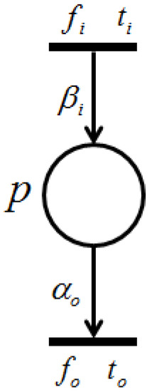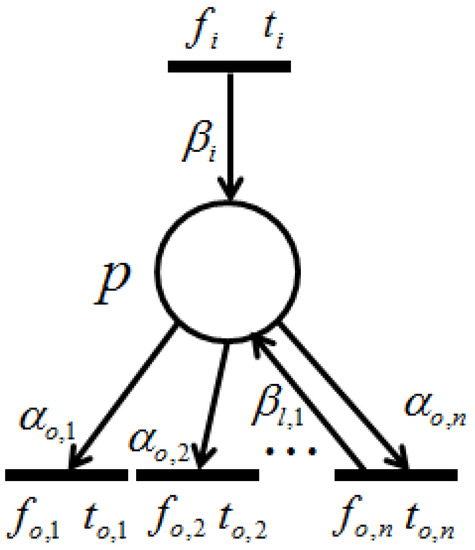 Suppose a place p possesses output transitions, , as shown in Figure 5. Then, the firing rule is as follows [23]: