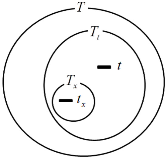 - Each unreserved token deposited to input place p is assigned to be reserved by the transition that satisfies the following expression:where is decided by the following condition: