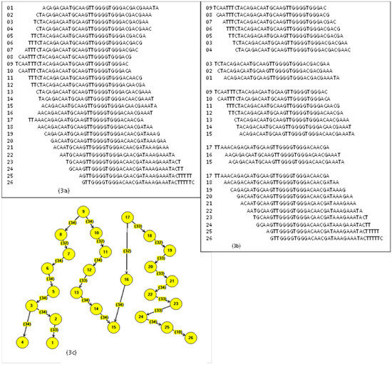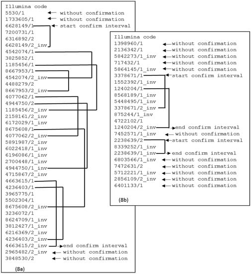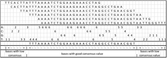 9] was found with 50 bases. In the results, we produced two versions, A and B. In our programs, we merge both data files because, during the initial tests, we found these records in the same file. We deleted the records with “N” values for the bases; this value means that the base is undetermined. In addition, we removed all characters except for the A, C, G, and T values. During the