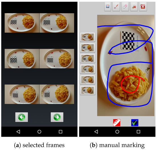 11]. In our customized version of GC, the user imposes some hard constraints by marking some food and non-food areas in one of the images. The application provides a user-friendly environment for marking images by simply touching the screen (see
