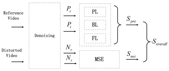 Figure 2, the reference video and the distorted video are denoised respectively. Each video is divided into two parts: a prediction part (denoted as