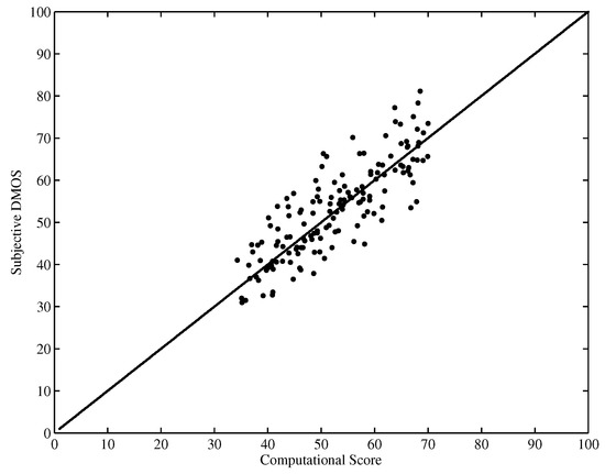Figure 6 show the scatter plot of the DMOS (MOS) against the objective computational score performed on the LIVE database and EPFL-PoliMI database, respectively. It is observed that the proposed HVQA metric performs well on videos ranging from low quality to high quality for both databases.