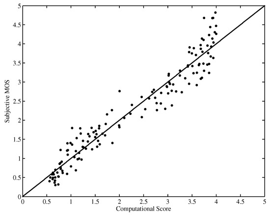 The mapping function adopted for regression of the computational quality score is a four-parameter mapping function, which is also used in STSI [