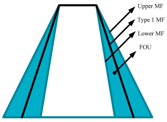 Interval Type-2 fuzzy membership functions are defined by two Type-1 membership functions, called upper membership function and lower membership function, and the area between these membership functions is called the footprint of uncertainty. A graphical illustration of these concepts can be appreciated in Figure 1 and it is mathematically defined in Equation (1).