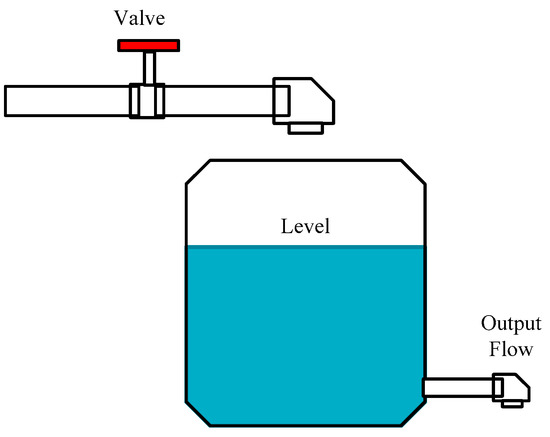 The water level control in a tank, illustrated in Figure 4, is a classical benchmark control problem and has been considered as a study case to improve the performance of FLC controllers and to compare FLC T1 and FLC T2, and other works with this plant can be found in [24,25].