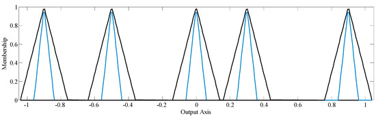 The output fuzzy set contains five MFs that are distributed without intersections as illustrated in Figure 5.