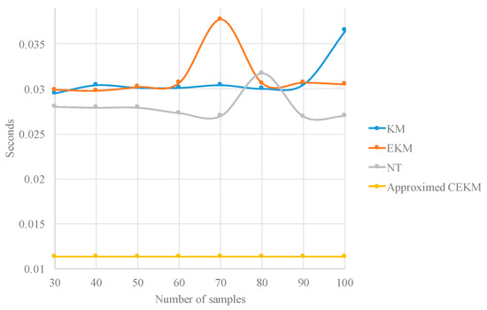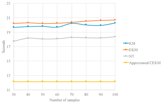 Figure 7 and Figure 8 illustrate the results reported 100 in Table 8, and as we can observe, the proposed approximate CEKM has the largest error (although note high), but is considerably faster.