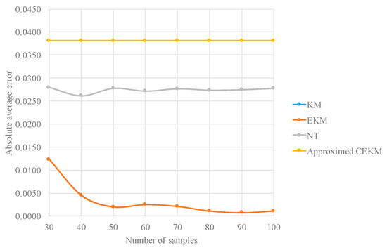 In Table 8, four type-reduction methods are compared by the absolute average errors with respect to a KM type reduction with ten thousand samples. The type-reduction methods that are compared are the KM, EKM, NT and the proposed approximate CEKM.
