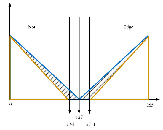 The gradients are approximated in this case as the differences in absolute values and these are the inputs to the IT2 FIS, the values are from 0 to 255, and the fuzzy sets can be found in Figure 10.