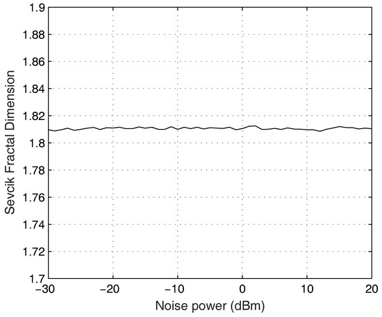 Figure 2 calculates the SFD of white Gaussian noise versus different power. Sequence length N = 4000. From the figure, the mean change range of Gaussian white noise SFD is smaller, which always fluctuates near 1.811 when noise power changes within the range –20,dBm. Simulation results validate that the noise SFD values have no correlation with noise power, which means that SFD can overcome the influence of noise uncertainty to a certain extent.