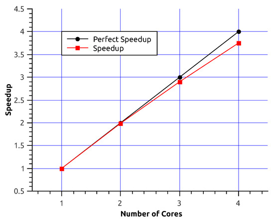 By analysing the algorithm, we see that it is necessary to execute Runge–Kutta instances for a different set of initial conditions . Obviously, in the serial implementation, the recalculation of the Runge–Kutta method is avoided by storing the previous adjacent result (in initial condition); that is, once the Lyapunov coefficient is calculated between and , the calculation of is no longer necessary to obtain the Lyapunov coefficient between and in the next iteration . Therefore, in this way, the algorithm has no strong dependencies rather than the adjacent ones, i.e., is weakly coupled.