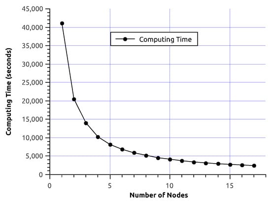 Computing times obtained from 1 to 17 processes in the cluster; the processes follow an ordered affinity.
