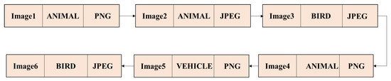 uCLUST clusters each record in JSON document based on the categorical attribute present in it, and uses the concept of linked lists to cluster the objects. The uCLUST algorithm gets the clustering attributes as input from the user, and searches the value of the clustering attributes in each record. For each record, it creates a node with fields recordID and the value of the clustering attributes. For example, if image metadata in JSON format is given as input with clustering attributes type (ANIMAL/ BIRD/ VEHICLE/ OTHERS) and format (PNG/ JPEG), the node for each record created is shown in Figure 3, which represents a record in the JSON document of the image metadata. In Figure 3, the node holds the unique ID of the record (Image1), the type of the image (ANIMAL) and the format of the image (PNG). If the clustering attribute of a record holds multiple values, then for each value a separate node is created for the same record.