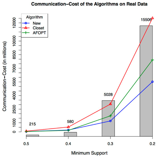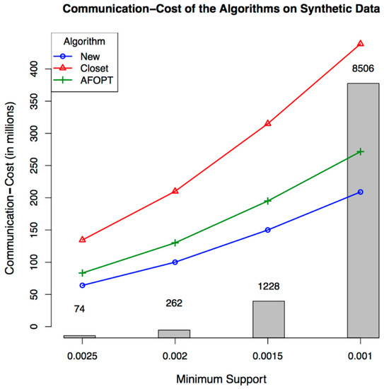 The first tested dataset is synthetically generated T20I10D100000K (will be referenced as T20) [37]. It contains almost 100,000,000 (D100000K) transactions of an average length of 20 (T20), and an average length of maximal potential itemset of 10 (I10). It is 13.7 GB in size. The second dataset is “WebDocs” [35,36] (similar to Section 3.3.1).