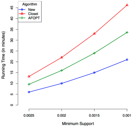 - Liu, G.; Lu, H.; Yu, J.; Wang, W.; Xiao, X. Afopt: An efficient implementation of pattern growth approach. In Proceedings of the Third IEEE International Conference on Data Mining, Melbourne, FL, USA, 19–22 November 2003. [Google Scholar]