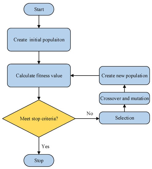 When the fitness function reaches the maximum, the OSMC controller has the best control results, and then the five parameters () of the OSMC controller are optimal. The procedures of a GA in the present study are illustrated in Figure 6.