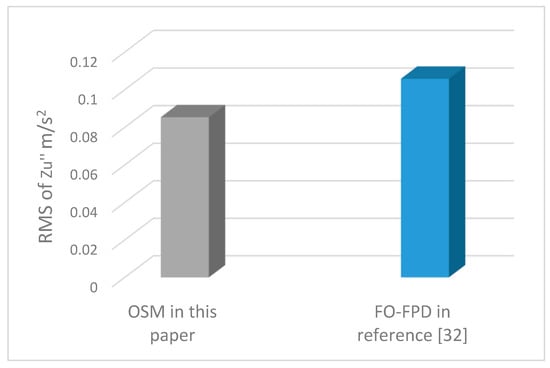 In order to demonstrate the validity of the OSMC controller proposed in this paper, two active suspensions mentioned in References [,] were optimized, and the results are shown in Figure 13 and Figure 14, respectively.