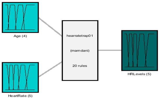 A Mamdani fuzzy inference system is designed for the classification of the heart rate level based on [19] and the experience of the cardiologist, the inputs and output of which are described below and illustrated in Figure 3: