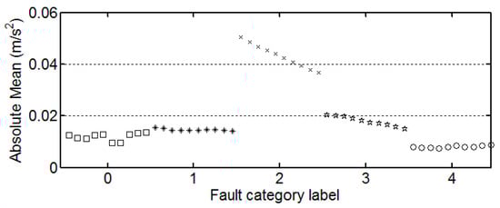 The absolute mean of the signal represents the statistical mathematical expectations of the absolute value, as shown in Equation (7):