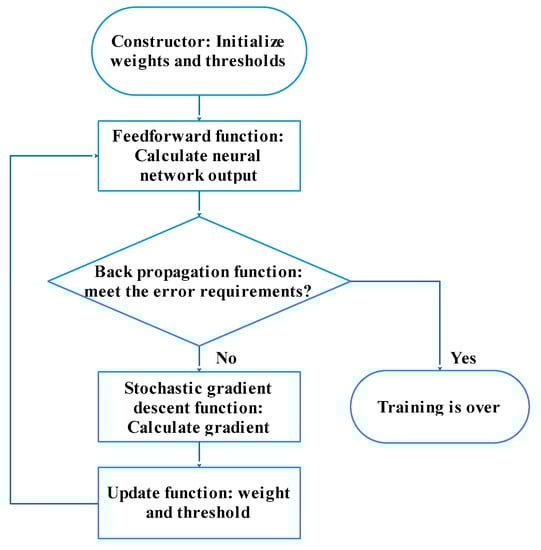 The function of the constructor is to initialize the neural network, including the neural network size that needs to be set manually, and the weights and thresholds. In this paper, 0–1 Gaussian distribution (i.e., the normal distribution) is used to initialize the thresholds and weights. This method takes into account the statistical assumption of the machine learning algorithm that all the samples are independent of each other, and in the case of enough samples, the distribution of samples follows the Gaussian distribution. This assumption is based on the central limit theorem.