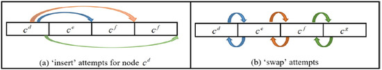 An illustration of Intra-Route Local Search. (a) ‘insert’ attempts for node cd; (b) ’swap’ attempts.
