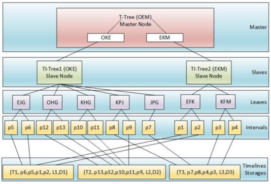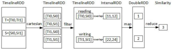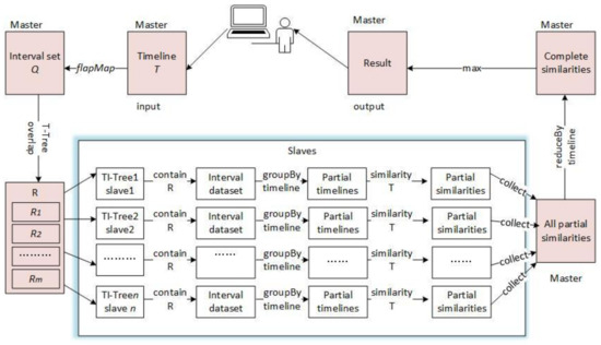 However, the timeline data are extremely large when all of them are converted into intervals with labels, and the data processing needs more computation, where it exceeds the capacity of traditional centralized technologies that are mentioned above. Some efforts have been performed to handle large-scale data. MapReduce [29] and MapReduce-Merge are two useful programming paradigms to handle large-scale data. Hadoop GIS [30], SpatialHadoop [28], and ST-Hadoop [31] were proposed to adapt the traditional spatial index structure, such as Quad-Trees and R-trees for MapReduce environments. The main drawback of these methods is that a large number of I/O disks is involved due to MapReduce’s requirement in reloading data from disk in each job. Apache Spark (https://spark.apache.org/) succeed in dealing with the limitation by introducing a resilient distributed dataset (RDD). GeoSpark [32] and SparkGIS [33] were proposed to adapt the traditional spatial index structure for Apache Spark environments. In addition, some trajectory indices, for instance, the distributed R-tree [34] based spark were proposed recently. Di3 [35] is reported to be the first comprehensive indexing framework for interval-based next generation sequence (NGS) data. The Di3 is mainly a chromosome-level parallelism index that is based on B+-Tree, and its future work is to support Apache Spark and Hadoop for specialized indexing on very large datasets. Furthermore, it refers to indexing NGS data rather than timelines.