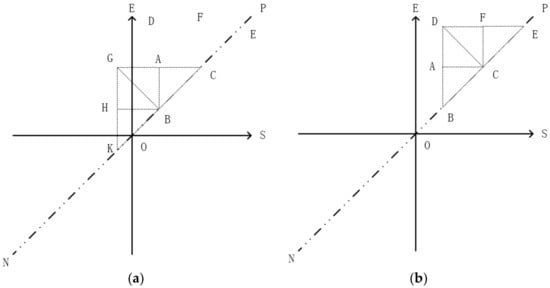 Extensions of the triangle ABC for TIPS. (a) Left extension; (b) Right extension.