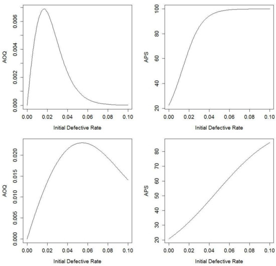 The formulas for AOQ and APS hold under perfect testing and when N = ∞. In order to apply them for a short-run context with perfect testing, we assign p as