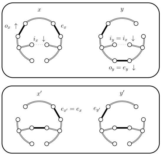 - If and then set and . In this case the chains coalesce, i.e., (see Figure 6). When the chains coalesce, the edges and no longer exist and the set is no longer relevant.