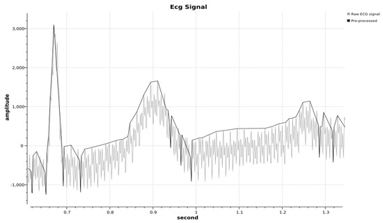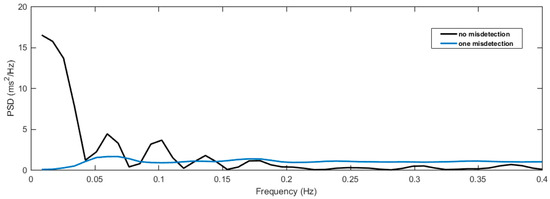 Figure 8 demonstrates a real example of the effect of R peak misdetection from the proposed method compared to the actual R peaks during HRV analysis. The misdetection occurred once in MIT–BIH NSR database record #19830 from 2670 s to 2700 s. We used a windows length of 30 s to show the difference of the HRV analysis with a single misdetection compared to that with no misdetection in the HRV frequency domain analysis. The misdetection greatly changed the frequency component compared to the actual NN interval without misdetection. Hence, the misdetection of the R peaks must be minimized in the HRV analysis.