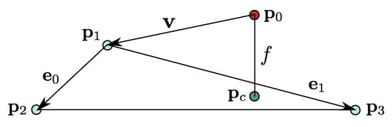 Figure 1 shows the point and the triangle with vertices , and . The projection point has the barycentric coordinates :