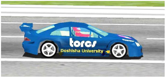 We adopted The Open Racing Car Simulator (TORCS) [14,15] for simulation of both the car and its environment. The main parameters of the simulated car adopted in our research are shown in Table 1, and its snapshot is depicted in Figure 1. The rationale of employing TORCS to model the car is motivated by the severity of the drawbacks of the existing alternative approaches. Indeed, evaluating the quality of the evolving SAF on a real car would be too unsafe, expensive, and slow. The hardware-in-the-loop (HIL) modeling [21] of the embedded electronic systems offers a possible solution to the former two issues. Indeed, in HIL, the real, hardware implementation of the driving aid (e.g., traction control, anti-locking brake system, electronic stability program, SAF, etc.) is connected to a computer that runs the driver-, vehicle-, and environment-modeling software. Such an approach, however, would be unable to solve completely the problems of (i) the cost (because of the need to build the real hardware and its computer interface) and (ii) significant runtime overhead (as the evaluation of the real hardware occurs in a real time). In our research, the proposed use of a car modeled in TORCS is intended to address all of the above-mentioned drawbacks of the alternative approaches of evaluating the developed SAF: TORCS is both free of charge and computationally efficient: one minute of simulated real time usually requires less than one second of runtime. Additional advantages of employing TORCS include (i) the realism of the simulation (by accounting faithfully for all the relevant forces that act upon a moving car) and (ii) the openness of its source code to the eventual modifications that would be needed for the intended implementation of SAF.