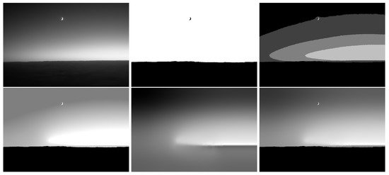 Finally, an image of the night sky with the moon meant to demonstrate masking was used. When multiple objects were present in the scene, then the transitions led to overshoots. It is expected that the bended plate tries to keep its shape at the edges. However, if the image were segmented into parts, then reconstruction might be applied partially, ignoring highly textured areas. Similarly, if the neighboring pixels differ in more than one discretization unit, then it can be assumed that they belong to different image components, and the assumption about signal smoothness does not hold. For an example, see the moon in Figure 5. If these regions (moon and sky) were not handled separately, then due to the stiffness of the plate in the model, the moon would generate a halo around itself. The synthetic examples were generated and the photo was taken by the first author.