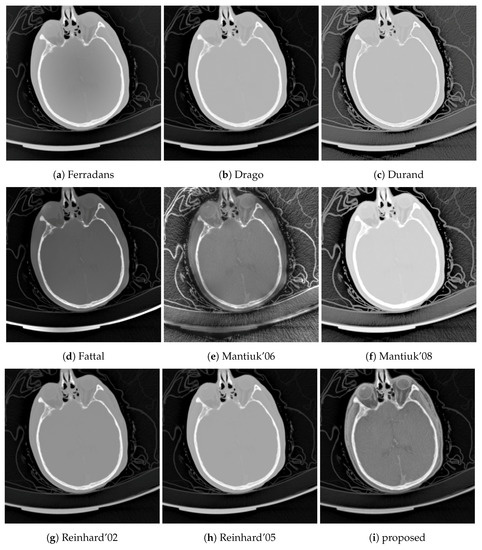 Good local contrast has a very important role in computed tomography (CT) images used for diagnosing pathologies [31]. Unlike traditional photographs, CT images contain a measurement of material densities, and these are unaffected by irradiation. Traditional tone mapping assumes that the image is the product of illumination and reflectance [32].